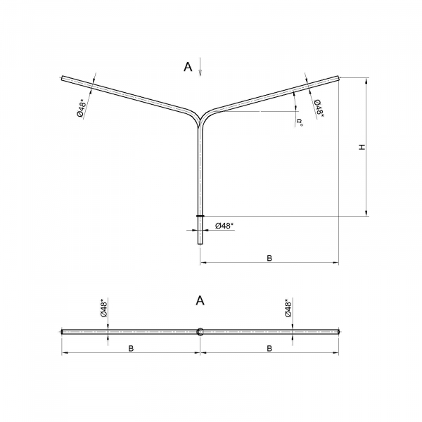 Двухрожковые кронштейны К4-1,0-1,0-1-1 предназначены для крепления светильника на трубчатой опоре освещения.