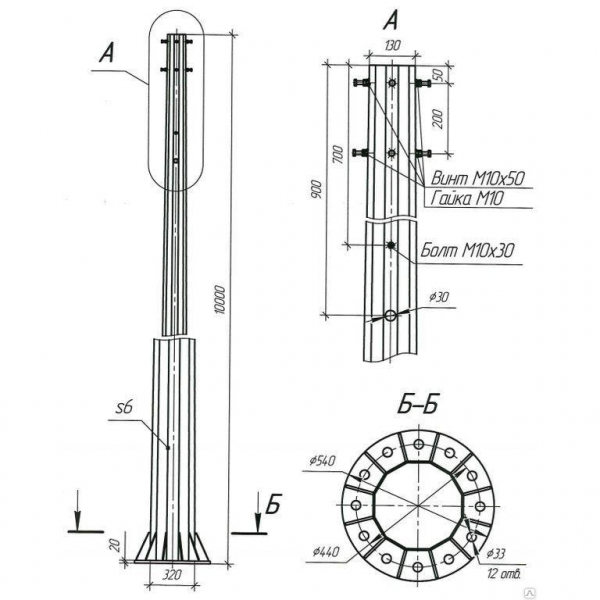 • 90 — диаметр верхней части опоры (мм);