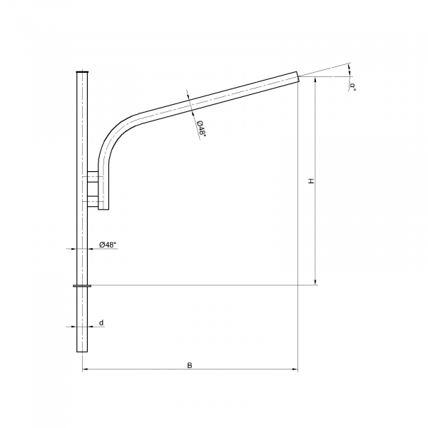 Однорожковые кронштейны К71-1,0-1,0-1-1 предназначен для крепления светильника на трубчатой опоре освещения. Завод опор освещения «Альдекс» изготавливает однорожковые консольные кронштейны из стального проката. Собственное производство позволяет выполнять изделия надлежащего качества и в кратчайшие сроки. Конструкция однорожковых кронштейнов К71-1,0-1,0-1-1. Конструкция консольных однорожковых кронштейнов К71-1,0-1,0-1-1 представляет собой гнутую металлическую трубу заданных размеров.